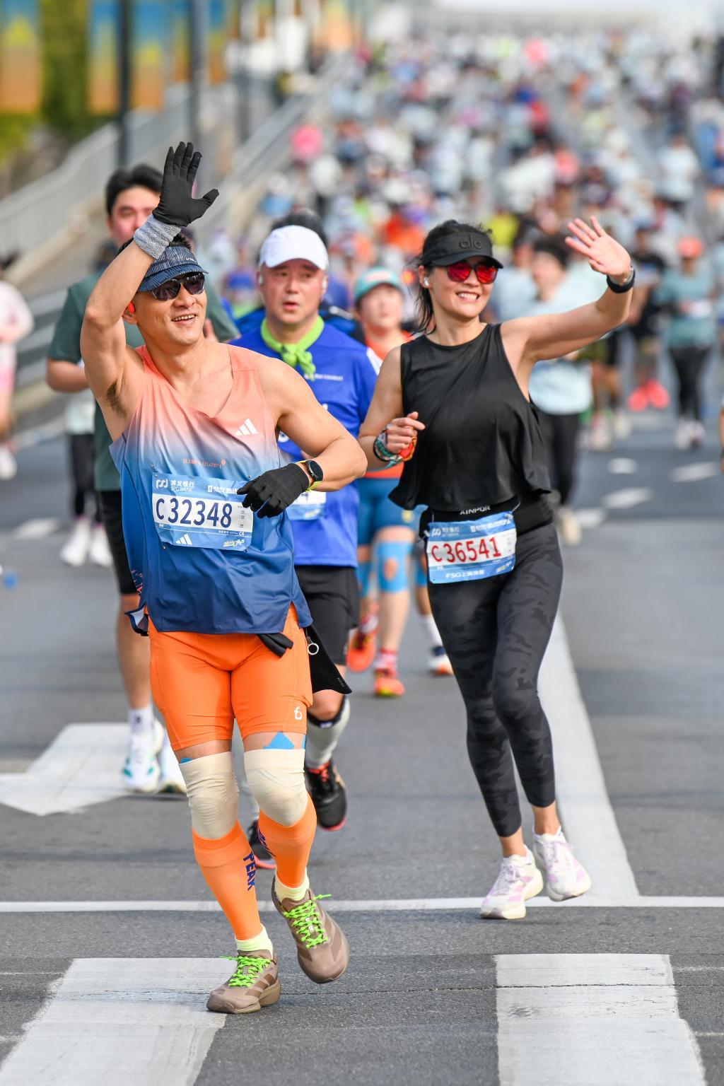 2026年3月15日,上海,选手在比赛中挥手和观众互动。澎湃新闻记者 朱伟辉 图